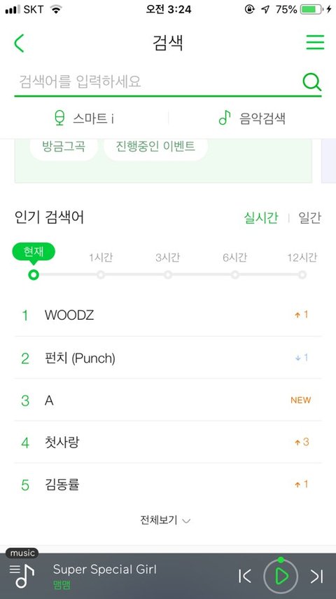 내가 직접 캡처한 오늘 새벽 세시 반 경 멜론 실시간 검색 순위야!!