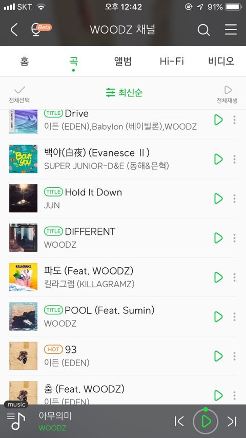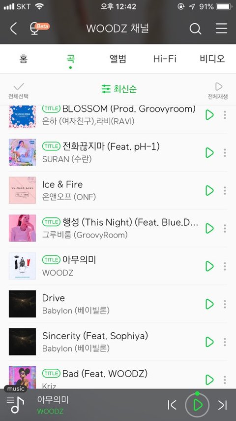 그리고 작곡작사 활동도 활발하게 하곤 했는데 이건 바로 WOODZ의 참여곡 리스트! 몽환적인 감성 좋아하는 나한텐 완전 취향저격이야ㅠㅠ (혹시 헤이즈 감성 노래 좋아하면 꼭 들어봐! 친구들에게 추천해서 실패한적이 없음)
