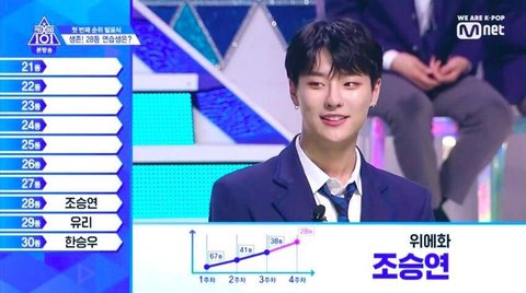 31명중 17위였던 조승연이 현장에서 1위를 한 건 역대 프듀에서 가장 놀라운 결과였어