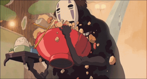 정체를 알 수없는 거대한 검은 생물이 주변에 있는 것들을 닥치는대로 우물거리면서 달려오고 있었음