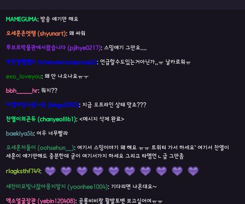 채팅창 싸운다 ㅋㅋ 백현얘기왜하냐고