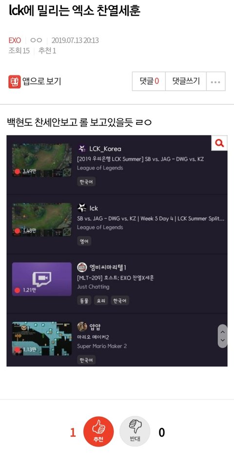 ⬇️lck에 밀리는 엑소 찬열세훈 여기서봐
