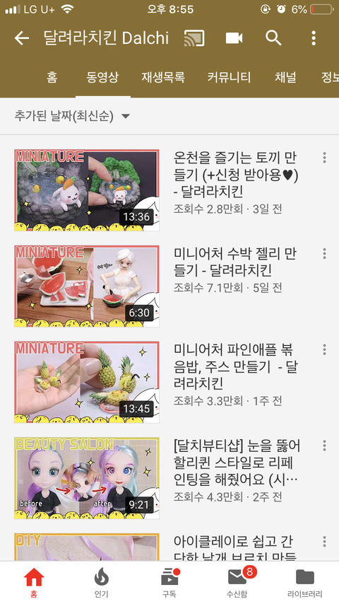 미니어처 계의 인기 탑... 이것도 4년전쯤 인기 최고조 였던 것 같음 구독자가 81만 인 것에 반해 조회수가 현재 잘 안나오심 ㅠㅠㅠ 미니어처... ㄹㅇ 추억,,,, 엄마가 비싸다고 레진(?) 안사줘서 맨날 물풀로 ^^...했던 기억이