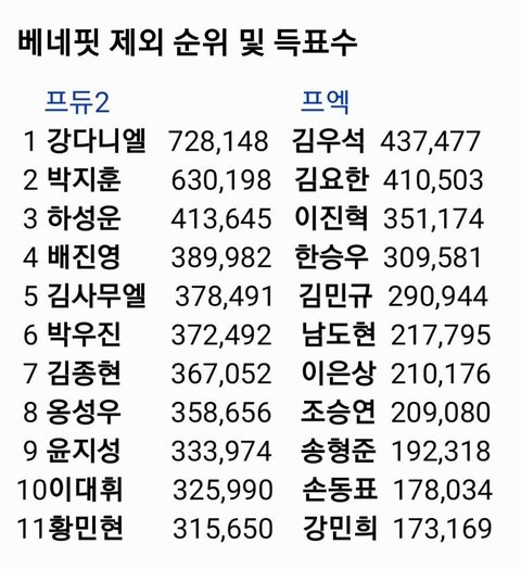 프듀2는 11화 까지밖에 없어서 똑같이 투표 일주일이었어ㅋㅋㅋ 여기 프듀x팬들 정신승리 봐ㅋㅋㅋㅋㅋ 망한 건 죽어도 인정 못하겠나봐