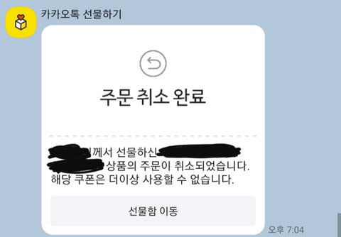 취소하려면 선물함 들어가서 나한테 보냈던 내역 들어가서 결제취소 눌러야되는데 그러고서 나한테 취소됐다고 뜬다고 안썻냐고 물어보는거임ㅋㅋㅋㅋㅋㅋ