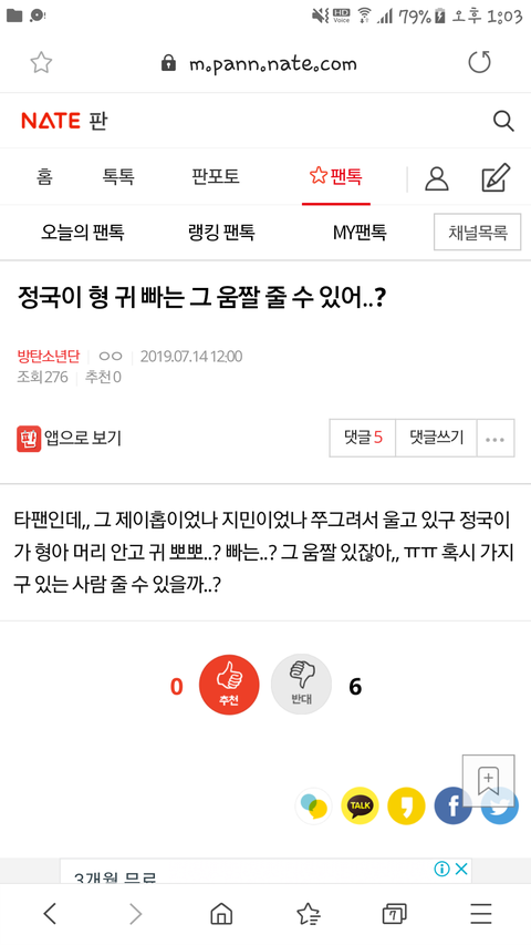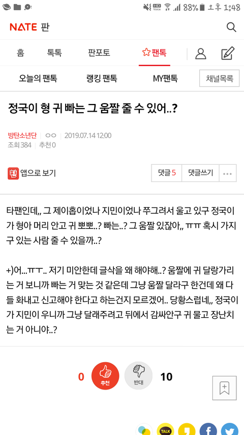 정국이 형 귀 빠는 그 움짤 줄 수 있어..?