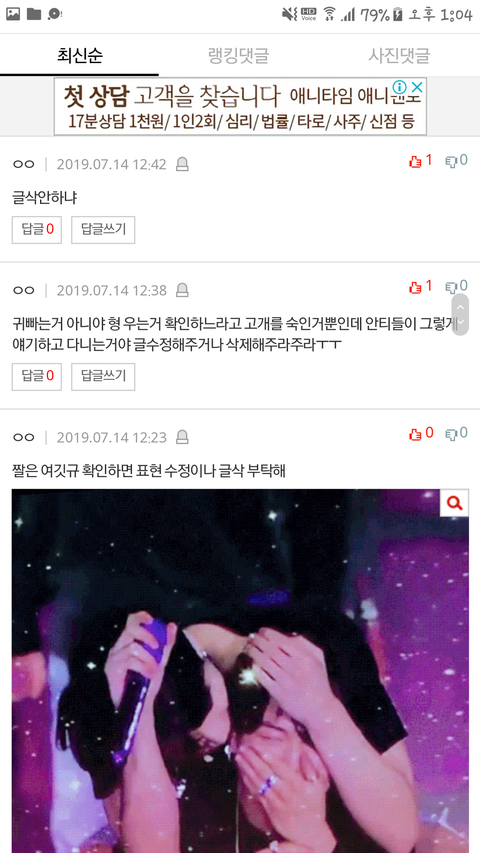 댓글 단 이삐들도 모두 댓글 삭제해주고