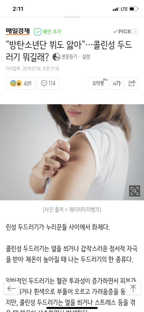 기사도 떴네 콜린성두드러기