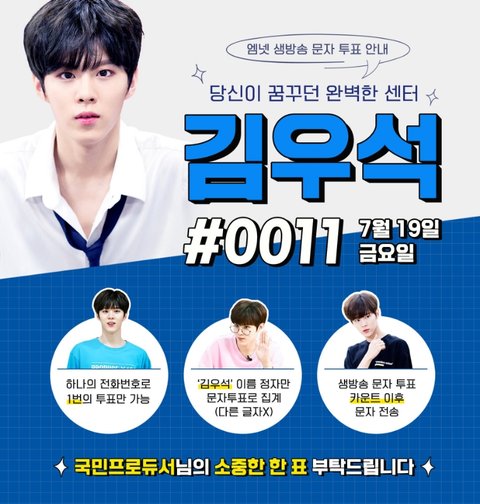 제발 정신 똑바로 차려 자기 픽 떨러졌으니 누구 뽑을지 알려달라는 글 보이면 우석이 바로 영업해 제발 데뷔도 데뷔지만 센터만들 작정으로 해줘 진짜...