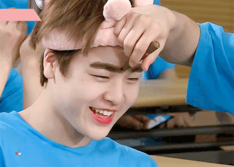 같은 소속사 형이 자기 얼굴에 무슨 일을 하는지도 모르고 무해하게 웃는 우리 갓기 ㅠㅠ