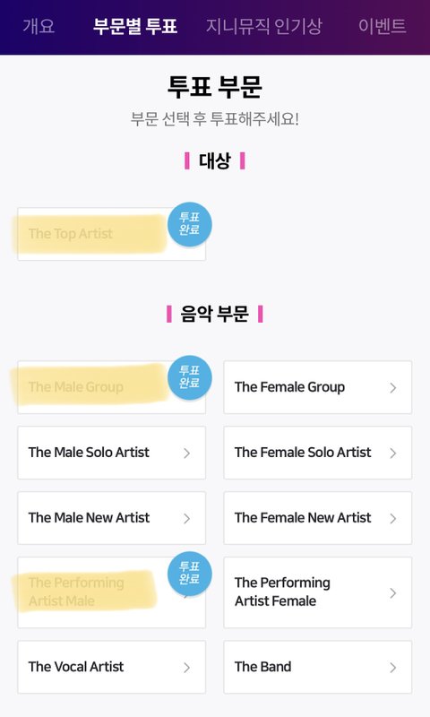 ❗️음악부문 (남자그룹상, 남자 퍼포먼스상) 두개 부문 노미