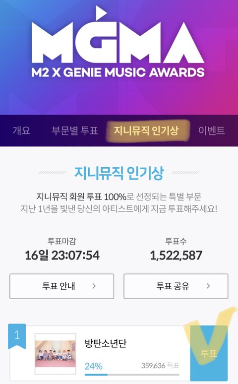 투표방법 : 지.니 뮤직 사이트 or 지.니 어플