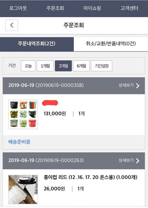 6/19 여기저기 알아보고 후기 좋은 사이트에서 컵홀더 제작과 테이크아웃컵 등을 343,500원을 주고 주문함