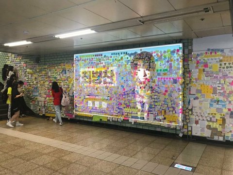 지하철은 공공장소입니다. 벽에 포스트잇을 도배하는것은 당연히 민폐죠. 저거 제거하려면 저기서 근무하시는분들이 다 떼야하는데 뭐가 문제냐고 물으면 답이없네요