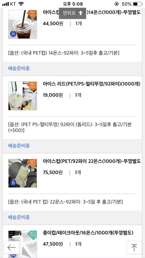6/19 여기저기 알아보고 후기 좋은 사이트에서 컵홀더 제작과 테이크아웃컵 등을 343,500원을 주고 주문함