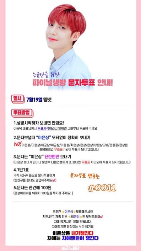 ⭐ 7월 19일 금요일 오후 8시 30분 이후 #0011로 이은상 투표 한 번만 부탁해 ❤