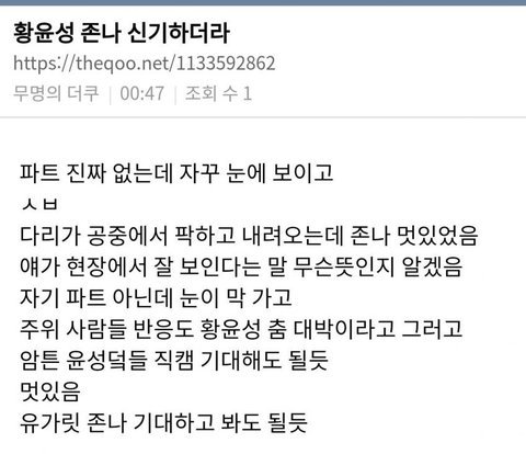 이 글은 #황윤성 연습생 영업글이야! (반말 이해해줘)