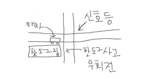 그림첨부할게요 사거리였구요. 핫도그 유명한집이있어서 차대놓을곳이없어요 사거리에