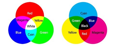 그림에서 보면 왼쪽이 빛의 3원색 (빨강,초록, 파랑 = RGB)