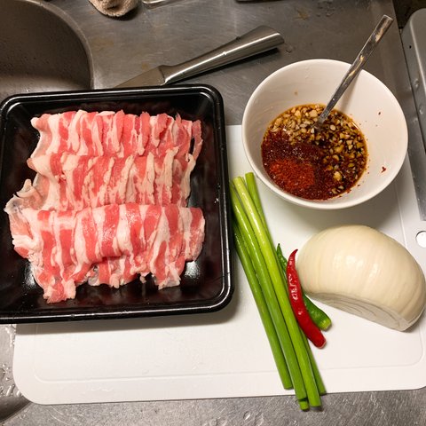재료 : 얇게 슬라이스 삼겹살1인분, 냉장고 털어 나온