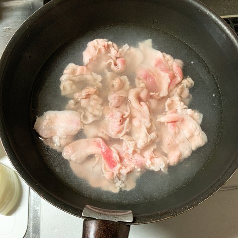 물이 끓으면 불을 끄고 겹겹이 붙은 삼겹살을 샤브샤브 하듯 기름기와 핏기를 뺀다. 단, 반드시 가스불을 끈다.