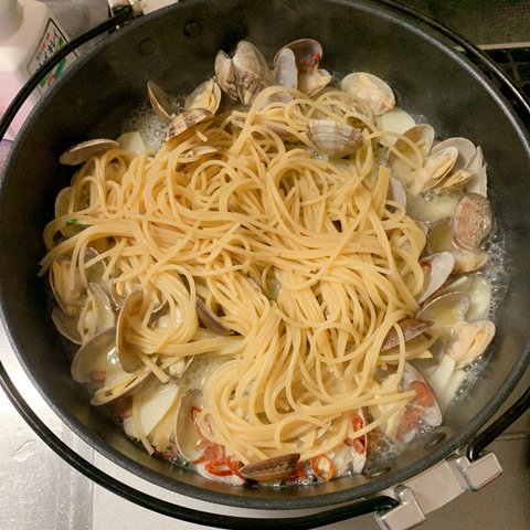 파스타는 미리 조금 딱딱하게 삶아 넣는다. 바지락과 함께 더 조리하므로 취향에 맞게 간을 한다.