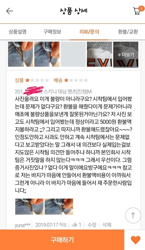 제가 바지가 마음에 안들어서 환불비 아까워서 이러는거면 이해하겠는데 바로 재주문 했잖아요.