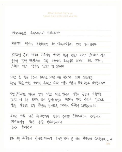 그리고 인스타에 자필 편지도 올려줬음 ㅠㅜㅠㅜㅠㅜ