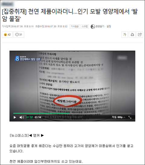 '포름알데히드' 성분 함유로 논란이 있었고,