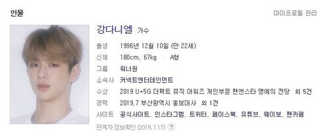 강다니엘 다음프로필 소속사 변경됐어❤