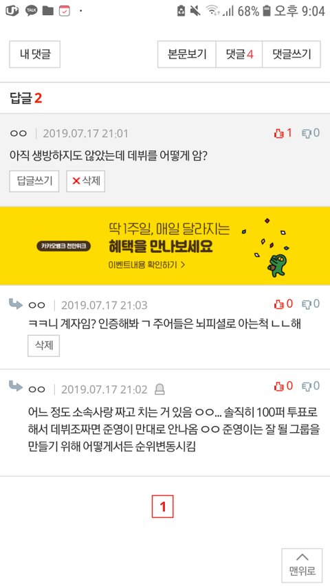 난 글삭절대안해^^ 아이고 창피해 내가 다 창피해ㅜㅜ