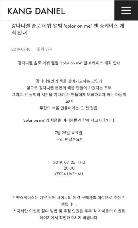 강다니엘만의 색을 찾아가고자 하는 고민과