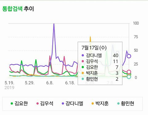별 이상 한 걸 다 갖고오네 ㅋㅋㅋㅋㅋㅋ 지금 한창 방송하고 있는 애들이랑 쉬고있는 애들이랑 검색량 차이 나는 건 당연 한 거 아님?