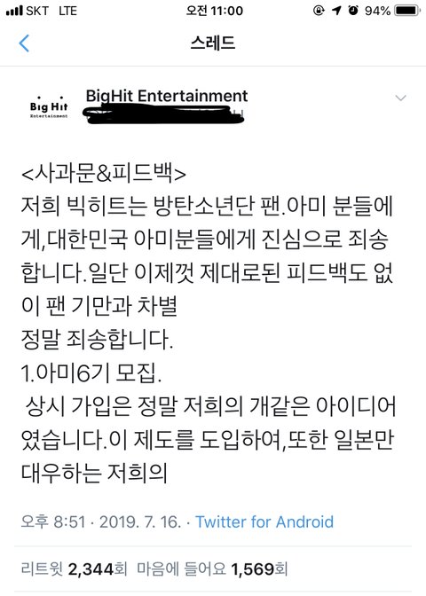 그중 16일 게시물에 ㅂㅎㅌ 사과문이 있음