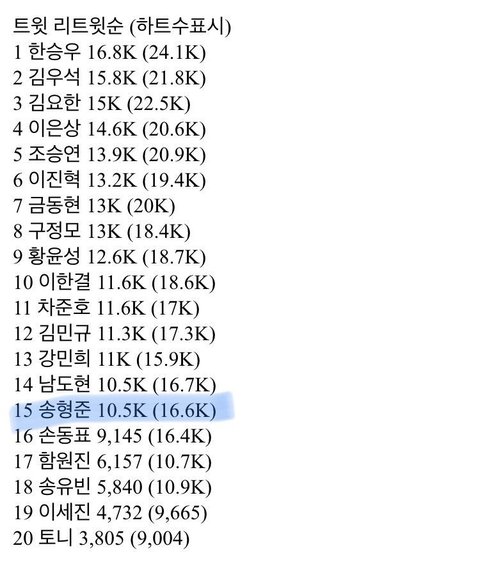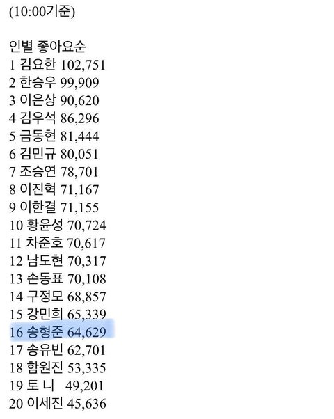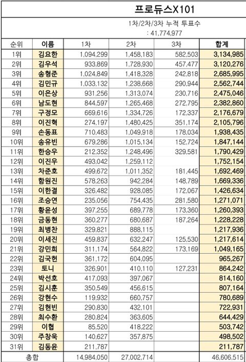 그것도 아니야 보다시피 3위인 형준이부터는 표차이가 엄청 촘촘해 문자투표 1건=7표인 건 알지 여기서 많이 받으면 충분히 뒤집힐 수 있다는 거야
