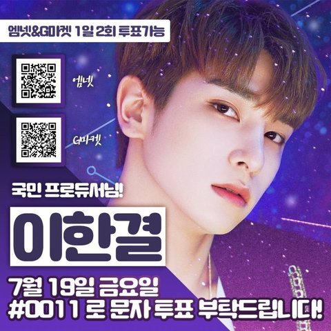 오늘밤 9시 이한결 기억해주고 문자투표해줘