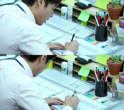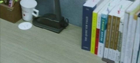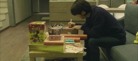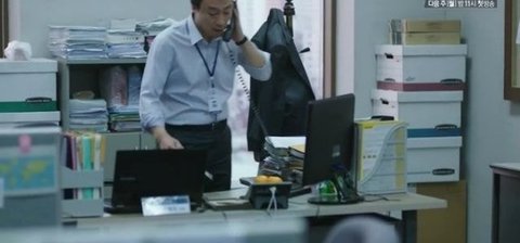 드라마 계절 배경이 겨울로 바뀌고 책상 위에 올라가있는 귤 두개
