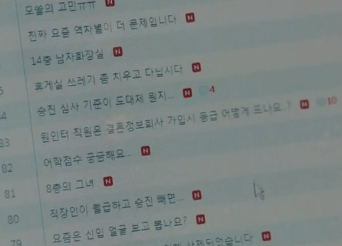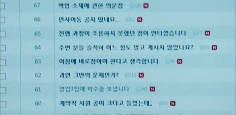 사내 인트라넷 게시판. 장그래는 영업3팀 글만 읽어봄ㅋㅋ