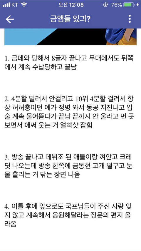 이거 진짜 현실이 될수도 있다 제발 금앰들 금동이 10위했다고 마음 놓고 차애 살리다 이러지 말자 ㅠㅠㅠㅠ금동 못잃어..