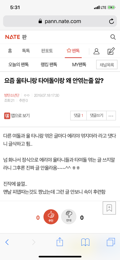 조방) 밑 요즘 울타니랑 타여돌이랑 여기서봐 ㅇㅁㄱ