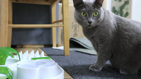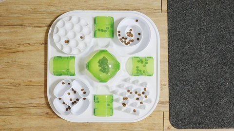 요렇게 생겨서 쉽게 사료를 못 먹게 하는 퍼즐그릇인데...