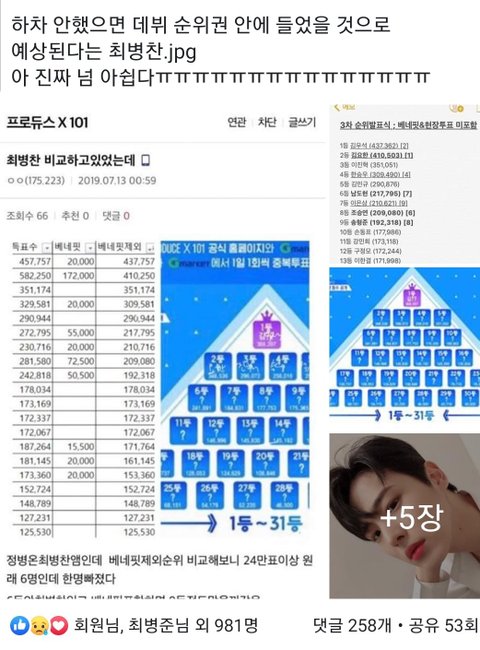 이때 병찬이 언급 많이 되가지구 울 병찬이 떡상했구나