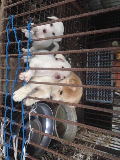작은 아이들을 뜬장에 몰아넣고 발판도 없이 오물 가득한 곳에 저렇게 가둬뒀어요. 덥고 비오고 춥고 아이들은 평생 저 뜬장에서 살 것 같아요.