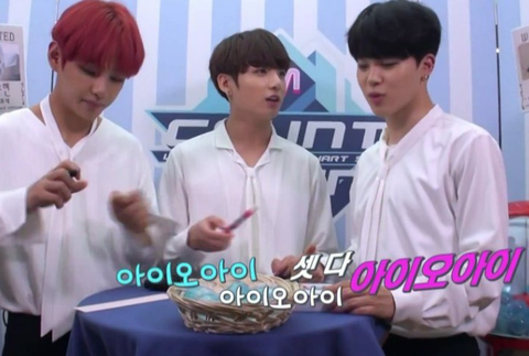 형들의 사랑을 듬뿍듬뿍 받고 있는 막내라인 ((왼쪽부터) 정국 지민 뷔)