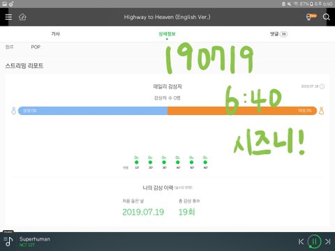 오늘 인증댓은 재생화면 캡쳐나 누적횟수 캡쳐 둘 다 받을게!