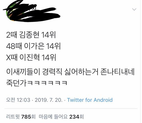 진짜 열폭러들 이것도 비추 테러ㅋㅋㅋ 여성 인권 타령하면서 잘난 애들한테는 심술 부림