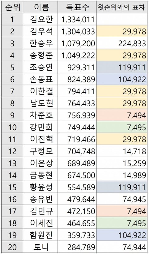 연습생 표차가 반복된다? 이상하다 싶은 사람들이 표 분석을 하기 시작함