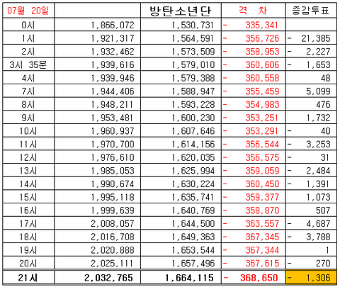 51화 7/20 토요일 인기상 격차 그래프 정산