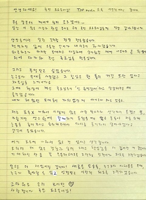 멘탈이 나갔다가 돌아왔다가 정신없는 와중에 진혁이 손편지보고