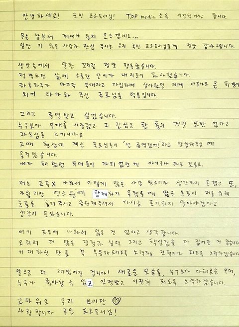 이진혁 편지처럼 나는 이진혁이 프듀나와서 잃었던건 없는것같아. 더 잘되고 말고는 이진혁이 알아서 잘 해줄꺼라고 믿고 기달릴려고.. 그리고 잠시 소홀했었던 현생살아야지.